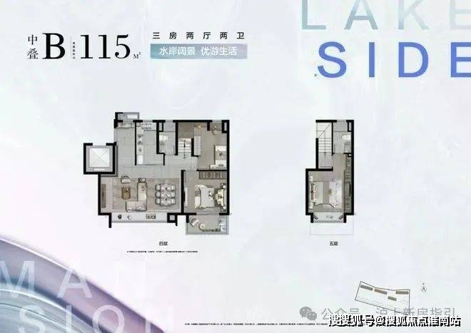 建面约115㎡中叠B户型图