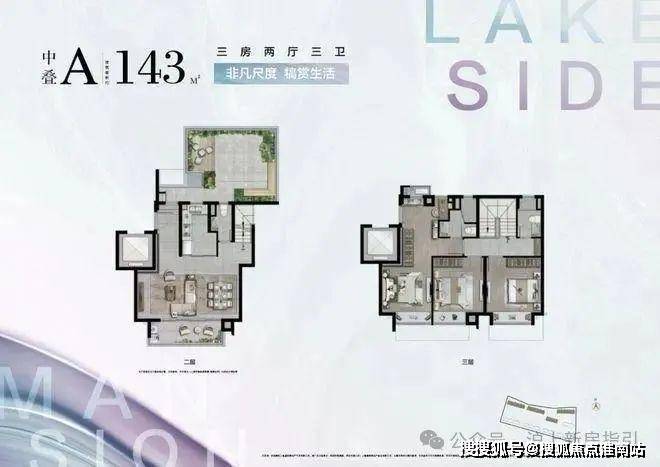 建面约143㎡中叠A户型图