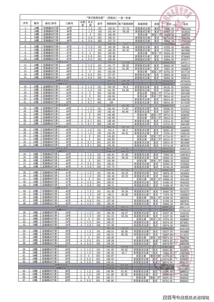 最新消息,一房一价表发布!宝山杨行「四季隐秀」四批次6月16号认购!推出建面约139-143㎡叠墅,共计113套,均价约6.29万/㎡!