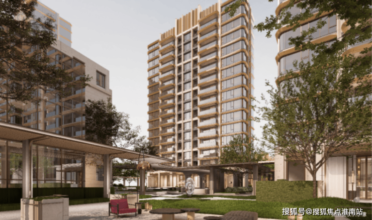 建筑以暖色为基调,香槟金为点缀,全幅玻璃幕墙搭配澄澈镜幕弧形立面,以柔美、流动的姿态赋新高端人居美学,成为激发情感联结、承载生活温度的精神栖息地。