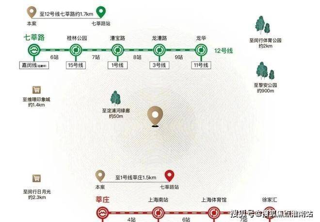 商业方面,离项目最近的商业是12号线七莘路站地铁上盖综合体维璟印象城,直线距离仅相距约1.4公里
