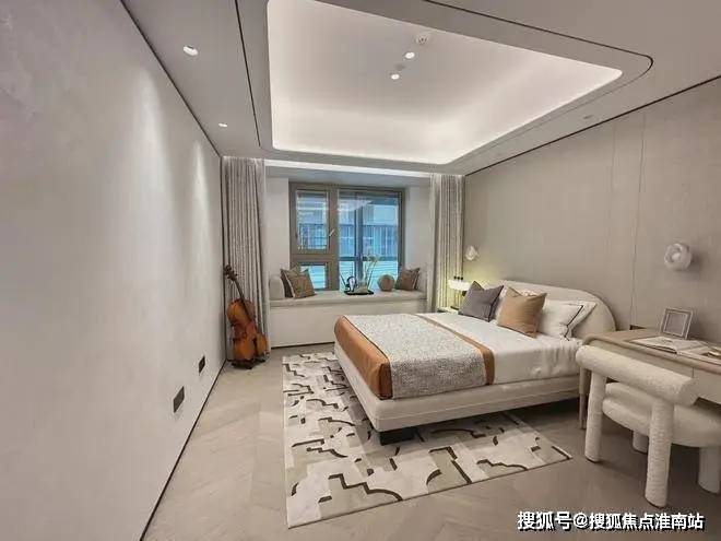 穿过客餐厅,是主休息区,三间卧室,南北双次卧+套房主卧。客卫干湿分离,两间次卧都可以作为正常成人卧室使用,小编实地测量下来,样板间的北次卧,加上飘窗有12㎡+,南次卧带飘窗的情况下有14㎡左右。