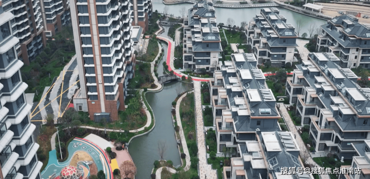 项目紧邻10万方贝港滨水生态公园,以水为脉,引水入园,匠造情景水系,形成叠墅区绿色岛居景观,营造双公园岛居墅居。
