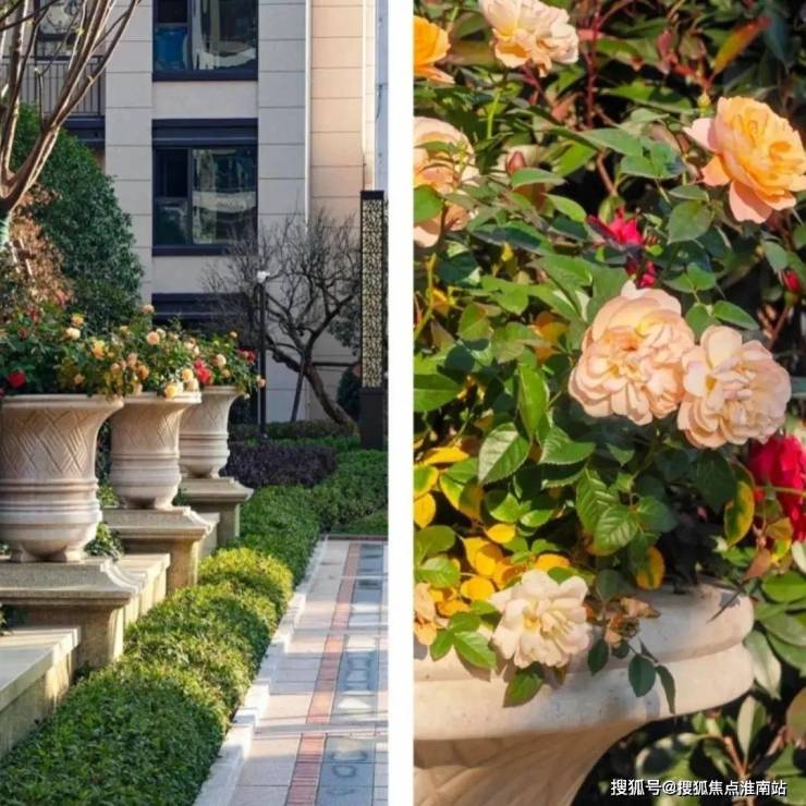 这是一棵屹立在门头处的橄榄树,它从西班牙远渡重洋而来,树龄约有数百年,造价不菲。即使路途再遥远、成本再高,它依旧以如此挺拔的姿态,惊艳众人。两边配置蓬径3米的茶梅球、红枫、造型茶梅金玉满堂·鸿运果等高档精品树木,