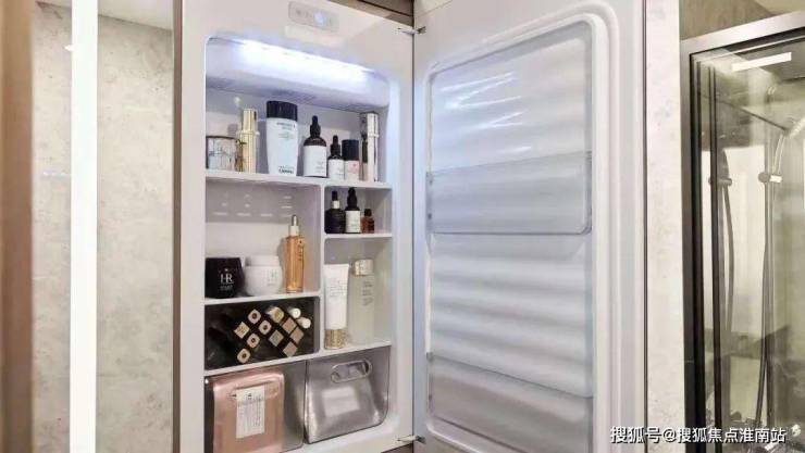 卫浴空间同样精彩,采用高仪的台盆、龙头、智能马桶、淋浴花洒等,主卫创新定制“美妆冰箱”,满足业主对美妆、护肤用品冷藏的需求,足见开发商对成本的舍得