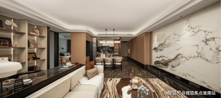 通过大量的奢石、隐藏式细节将整个室内打造成了艺术的殿堂。