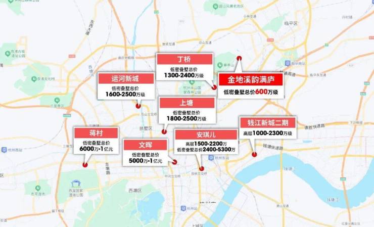 全杭州视角为例:市中心武林武林半小时生活圈范围内,金地溪韵满庐至少比其它项目便宜百万。