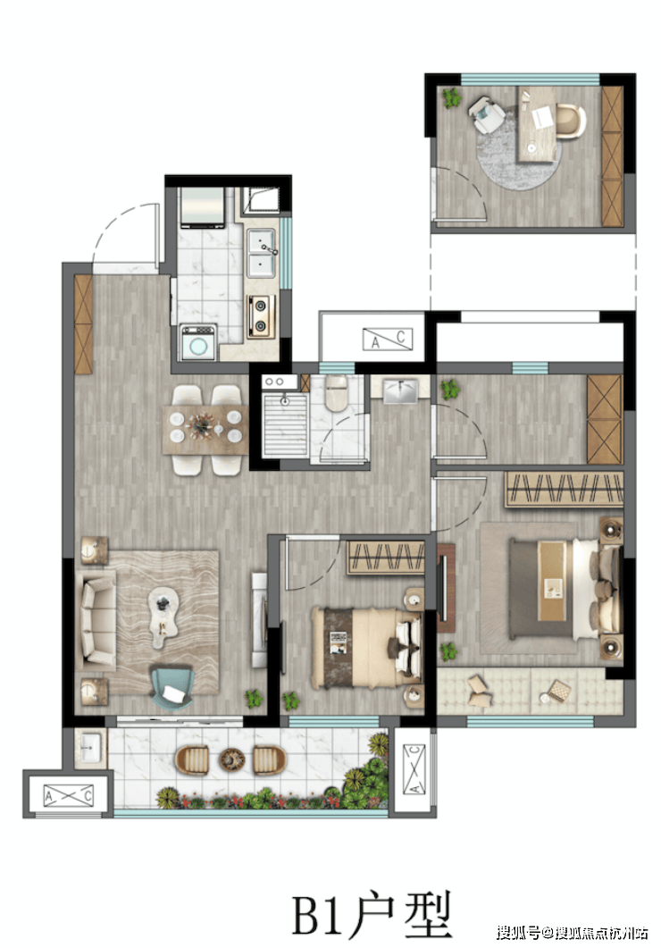 B1户型3室2厅1卫88m2