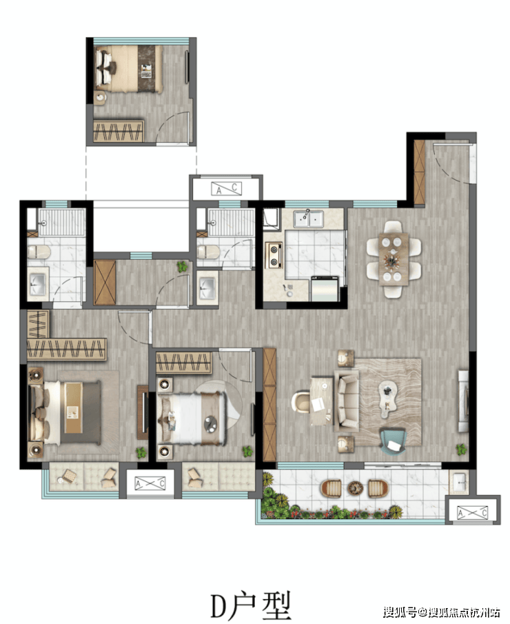 D户型3室2厅2卫118m2
