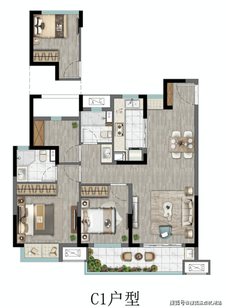 C1户型3室2厅2卫105m2