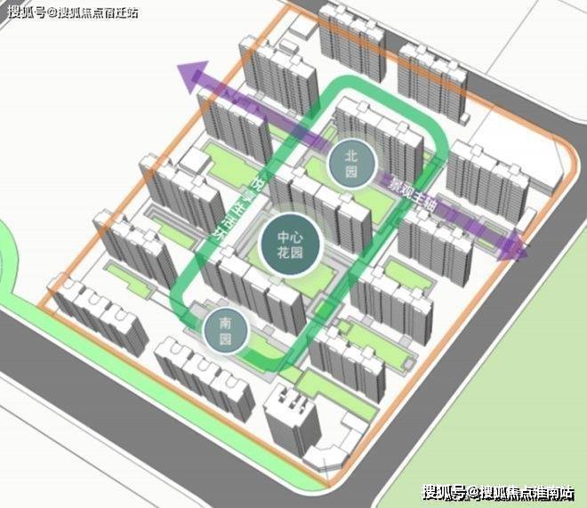 项目精心规划“一环一轴三园”,于建筑中另辟一方天地,以绿意包裹整个小区,打造绿氧环绕的公园住区。