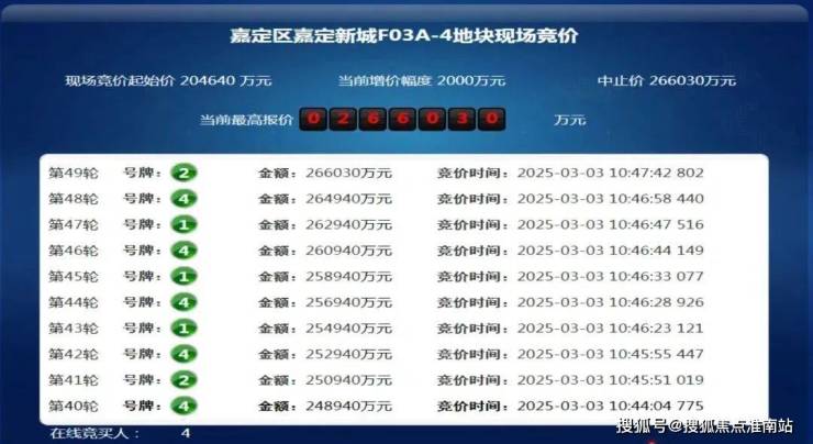 3月3日,上海2025第二批次土拍,经过49轮竞价,招商蛇口以266030万元的总价摘得嘉定新城远香湖F03A-4地块,溢价率30%,成交楼板价约31850元/㎡,装修标准3000元/m²。