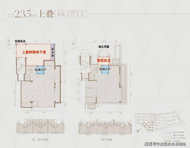 首先,上叠是北向 私享入户花园,独门独户,室内私家电梯 ,尊崇感与私密性都有保障。