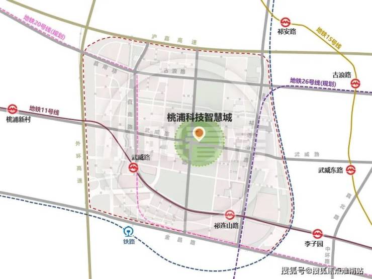 地铁方面,区域内已经有了11号线和15号线。规划的26号线地铁线在桃浦智创城范围内沿祁连山路也将设立站点。