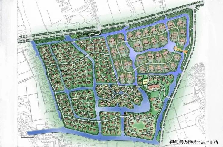 从现场俯拍图可以看出,整个社区整体水系丰富,每个版块错落有致,景观分布均匀,道路系统也简洁明了,便于通行。