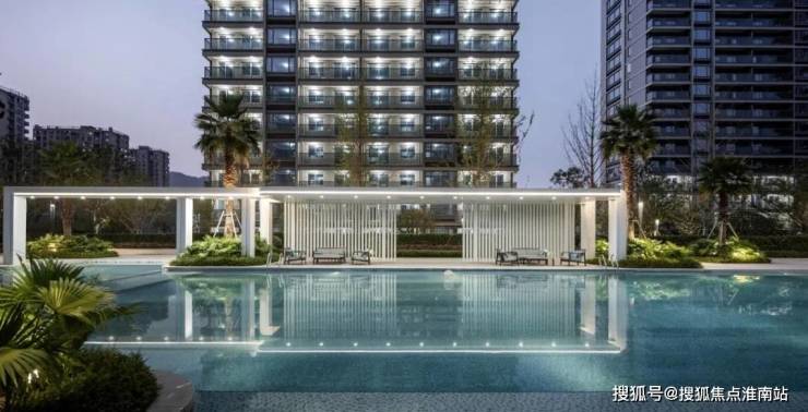 泳池构架以白色为主色系,蔓延的水系丰富了视觉层次,时刻上演假日时光。居者随手挽起一泓碧水,感知静谧晚风拂来,柔和视觉,亦舒缓心境。