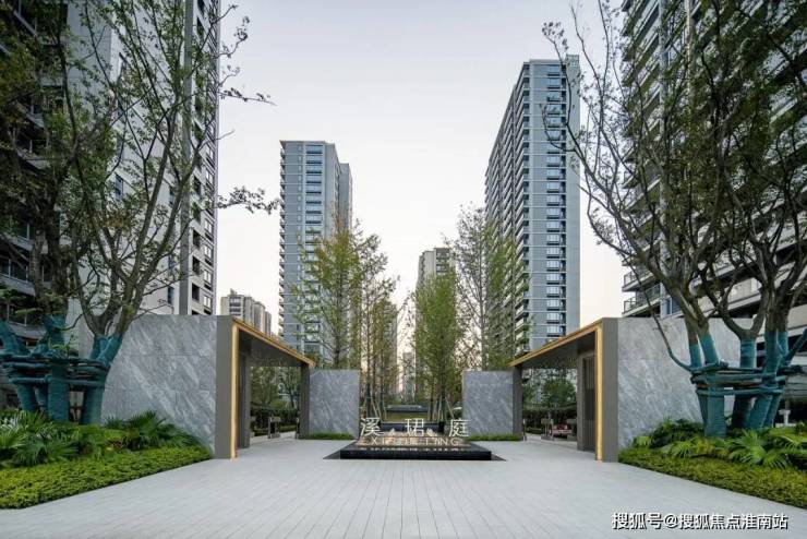 杭州中天溪珺庭售楼处电话400-891-9910✔✔✔设计师以轴线对称的方式强化入口的迎宾仪式感。通过高大的乔木列植使夏日归家体验林荫,秋季感受色叶的季节变化,冬日感受阳光透过树梢洒下地面带来的暖意。杭州中天溪珺庭售楼处电话400-891-9910✔✔✔