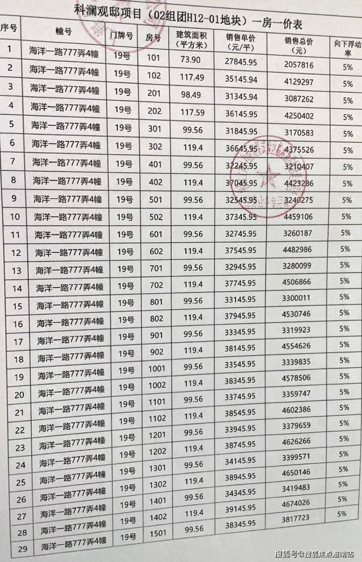 一房一价表如下: