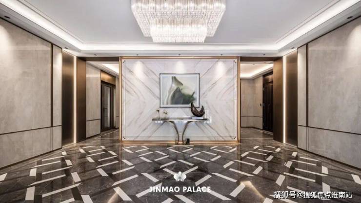 地下精装大堂彰显着金茂府的高贵与典雅,石材、金属与灯光的相得益彰,既增加了空间的温馨感,又提升了整体的舒适度;