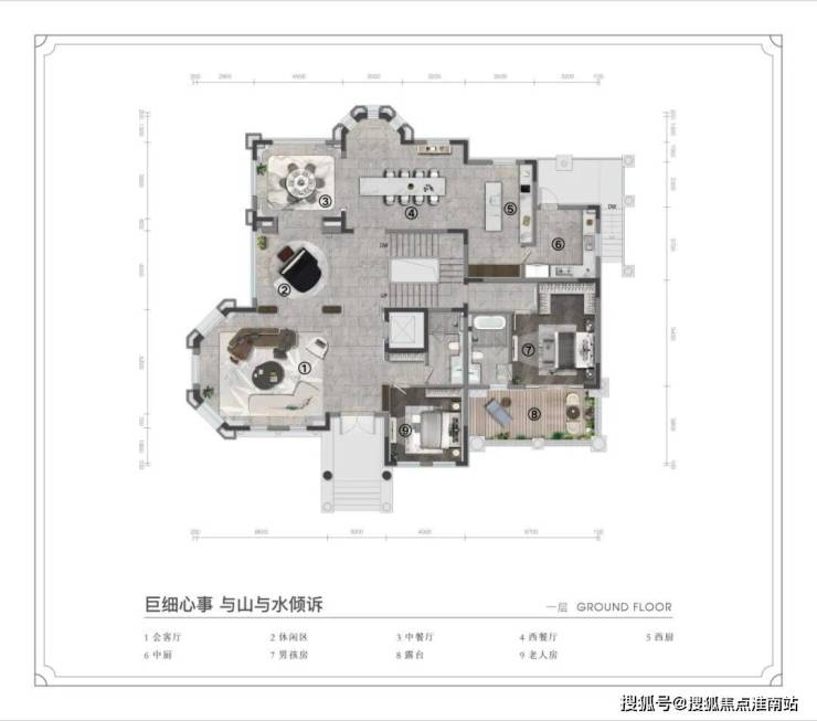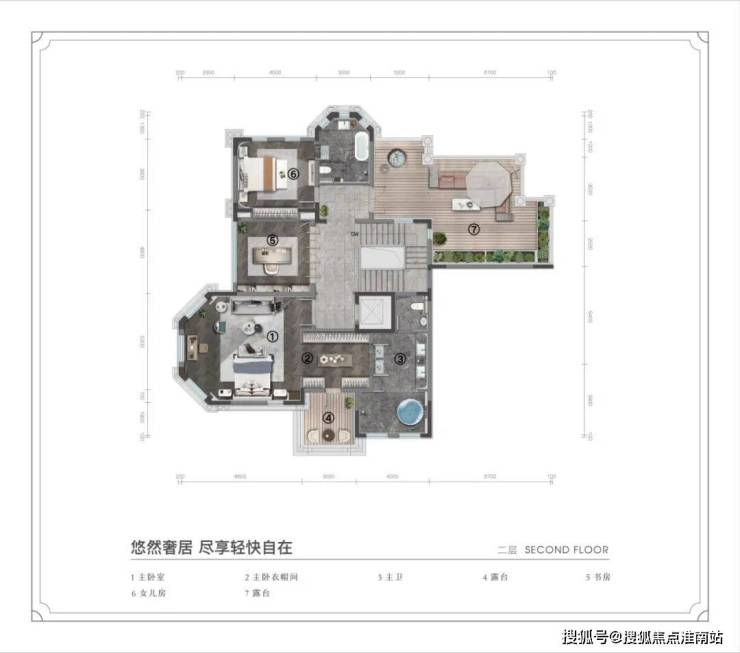 约639㎡主力户型:5室3厅,动静分区明显,居住舒适度高;