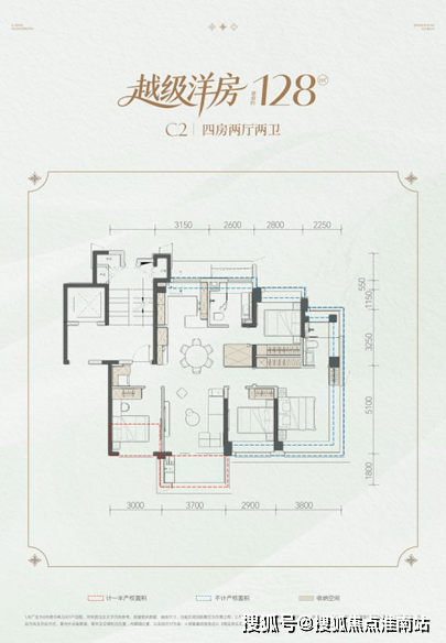 约128㎡「越级洋房」四室两厅两卫,实现了约89-95%的高实得率,将同等面积段产品的空间利用率推至新高度,做到真正的大四卧格局。