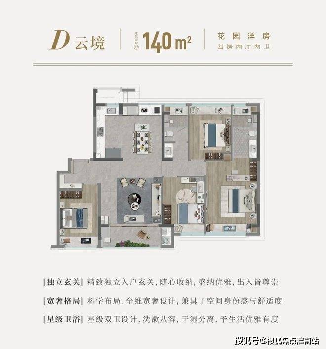 国印东方售楼处电话/地址:400-8818-994【官网】✅✅✅约140平方米4房2厅2卫,四开间朝南,通透敞亮;半开放式的U型厨房,空间感更开阔,切配更舒适便捷,一体化中西双厨设计,给予生活多一种选择,与家人分享多一种美味;