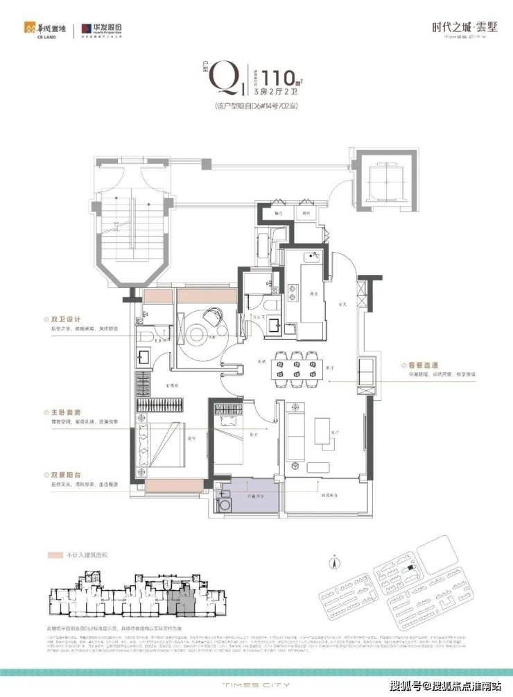 170m²上叠,南向双阳台+南北双露台:
