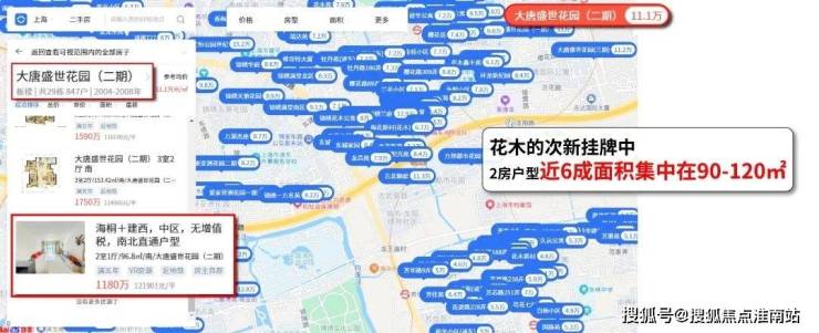 且不论浦东星河湾这样的标杆,挂牌价达约13万/㎡。如今房龄近15年+的大唐盛世花园挂牌价也要11万+/㎡。