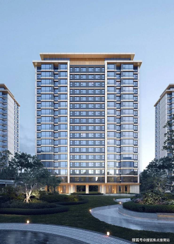首层基座采用人造石材+铝板等装饰材料,增强建筑整体感和精致度;顶层外挑飘板使建筑立面更加清晰,层次感更丰富。