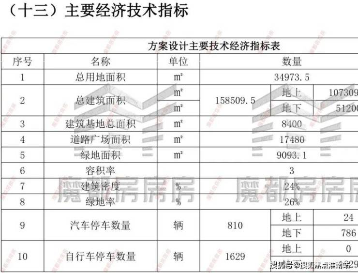 建筑总用地面积3.5万m²,总建筑面积158509.5m²,含地上建筑面积107309.5m²及地下建筑面积51200m²。在地上功能中,商办组团共63780.5m²,住宅组团共41140.0m²。项目设双层地下车库,共计停车位810辆。