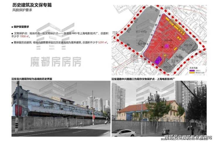 文物保护点:地块内有一处文物保护点——宝通路 449号上海电影技术厂,总面积不少于1958m²。