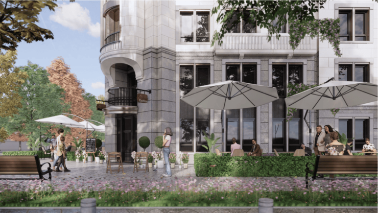 未来业主下楼漫步街区,城市广场、街角公园、咖啡馆点缀其中。浪漫的海派生活方式与现在的淮海路新天地无疑有着异曲同工之妙。