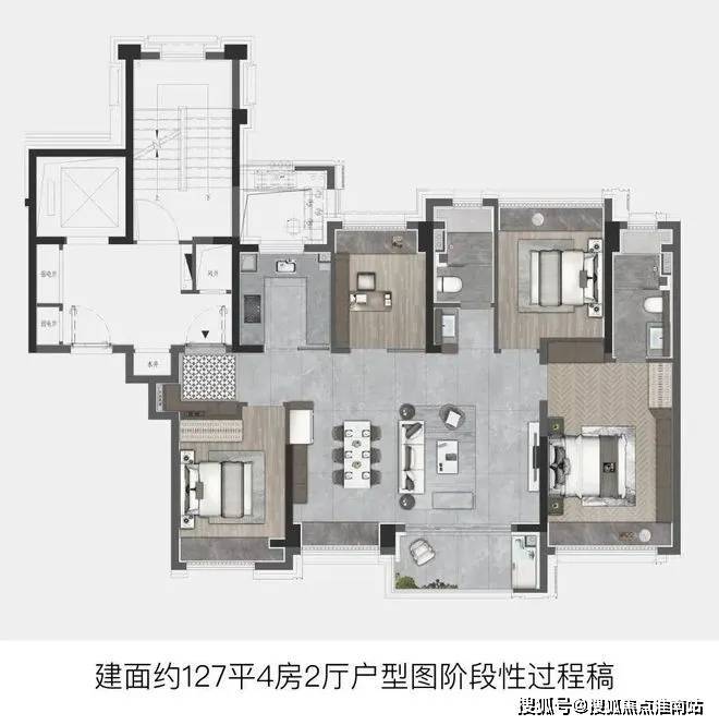 建面约127㎡直接进阶4房,功能性拉满,适配当下越来越多的二胎或三代同堂家庭。