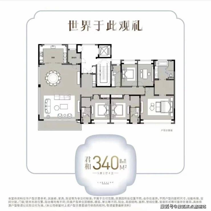 主力户型:有建面约 285㎡、300㎡、340㎡的大平层产品,户型为 4 房 4 卫或 5 房 4 卫设计。
