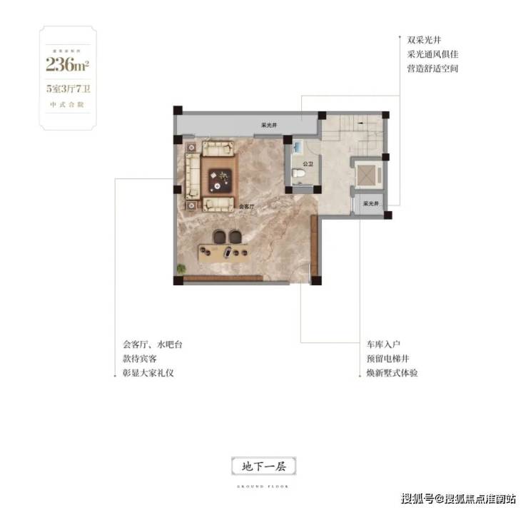 合院的地上两层,彰显着主人的优雅品位与尊贵享受,而地下空间则以其独特魅力,承载着办公、兴趣、亲子、家政等多重职能。