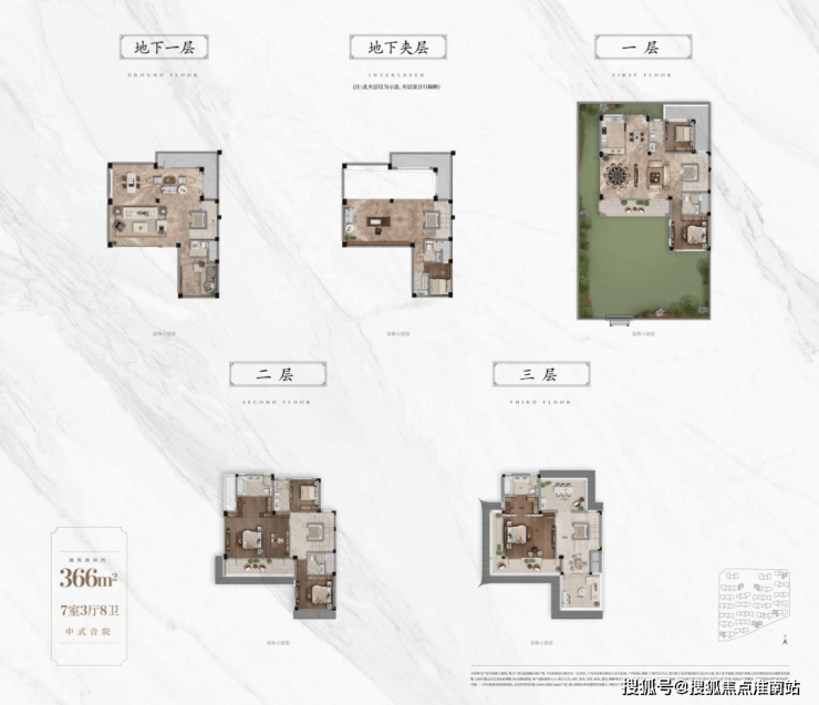建筑面积约366㎡的合院户型