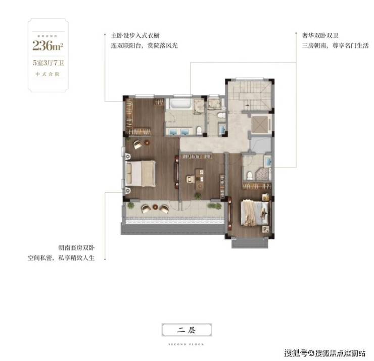 小桥流水间,一花一草皆成景,近百吨的太湖石与远山相映成趣,高低起伏、错落有致,共同勾勒出一幅绝美的画卷。步入院落,庭、廊、厅三重空间层层递进,以中式建筑的典雅与庄重,展现了当代生活的雅致与和谐。这里不仅是繁星与城市交相辉映的华丽舞台,更是家人欢聚、亲密互动的温馨港湾。