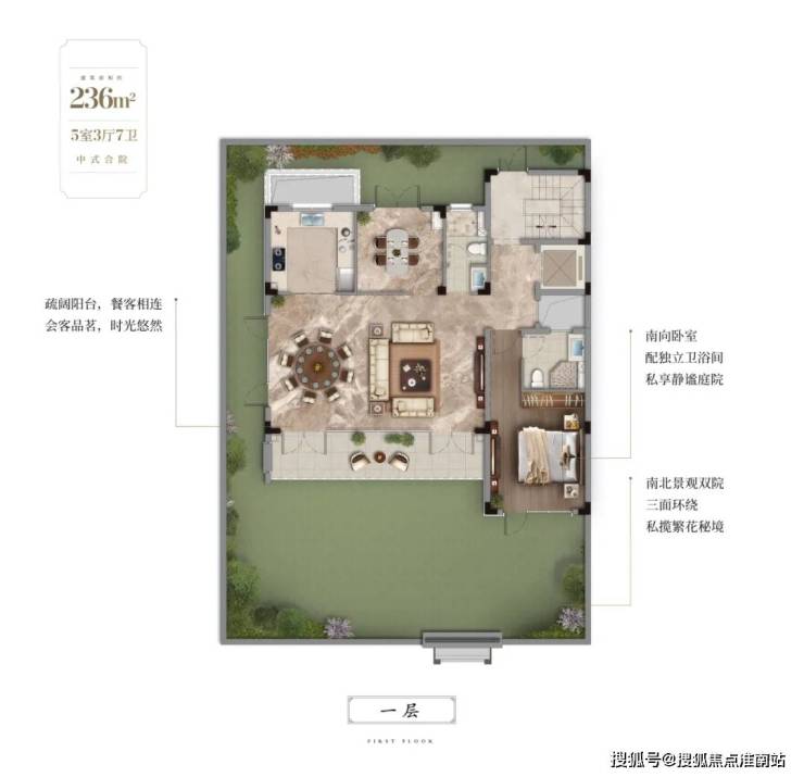 走进一层,仿佛踏入了自然与生活的交融之境。南北双院的设计,生动诠释了国人对院落的深厚情感,让主人仿佛置身于一个私家花园,尽享绿意盎然的美景。