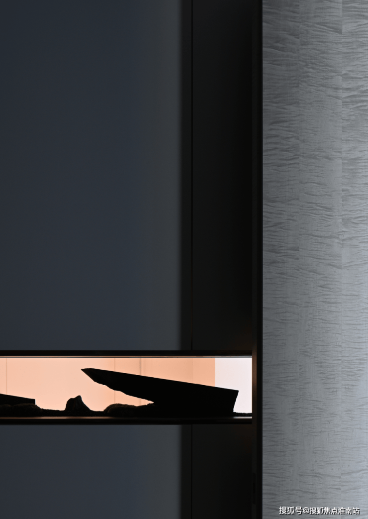 光线在百叶窗的过滤后,格外温柔,悄然点亮室内空间。夜幕降临时,此处又变幻成了一个隐私的场所。