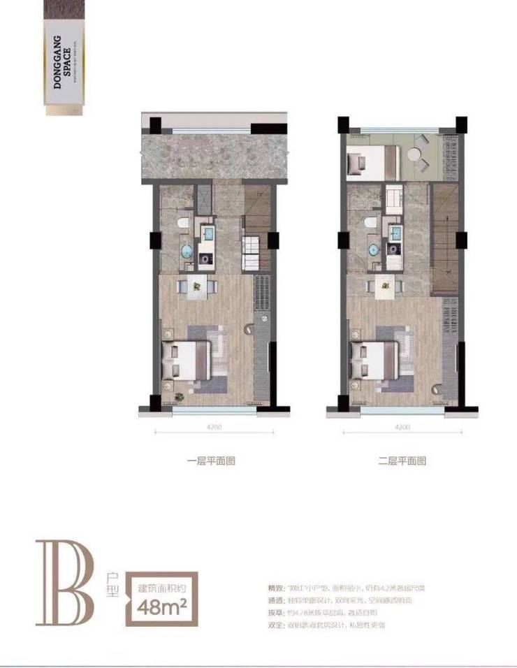 东港空间二期,地铁口上盖,38-58方4.78loft,100万起