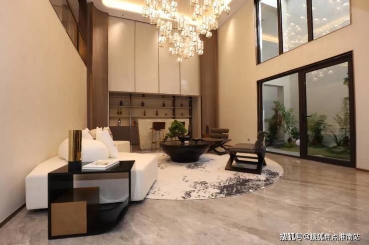 一楼270度围合庭院,将客厅与庭院融为一体,满足东方人对于生活的向往。置身其中,嗅觉、听觉、触觉、视觉、味觉五感被全面唤醒,充分感受到身居闹市而独享自然静谧的奢华体验。