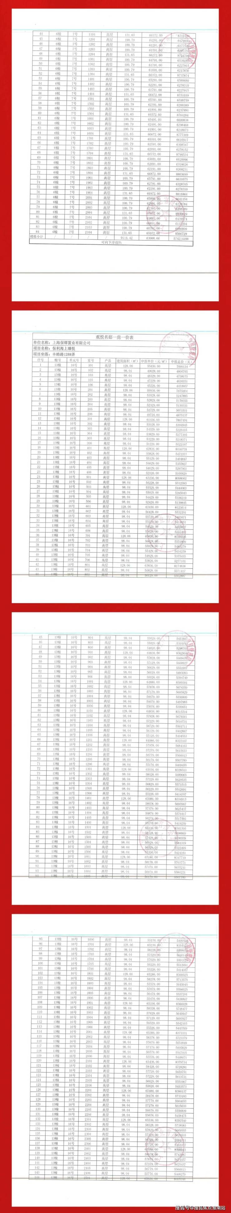 最新一房一价表: