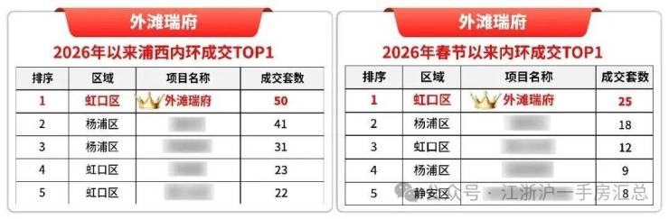 截至上周五,外滩瑞府已稳居春节后上海内环内销量TOP1;