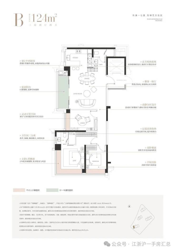 约270°IMAX环幕厅堂:客厅尺度阔绰,若打通北向X空间,可拓展至约90㎡超级横厅,采光观景俱佳,中高楼层直瞰陆家嘴天际线,家族宴请、高端社交从容应对;