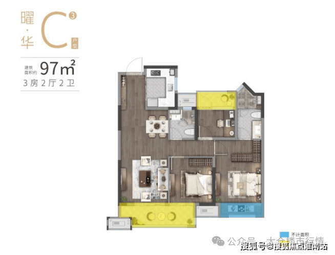 建筑面积约80-119㎡全生命周期户型,二房到四房设计,承载从二人世界到三代同堂的家庭进阶过程,适应不同家庭所需,构筑更为丰盈的生活场景。我们希望为每一户打造的家不是过渡,而是一生居所。