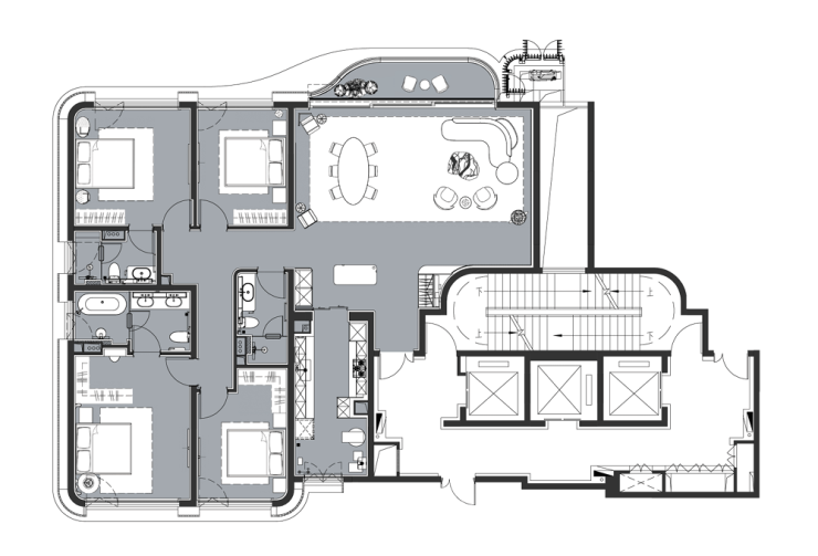 约388㎡大平层 ,三梯两户,尽显尊贵:
