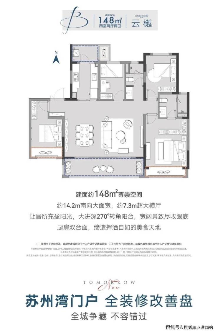 约7.3米大横厅 (148㎡户型),构筑灵动自由的奢享空间,满足80%的家庭休闲时光;科学合理的动线规划,全装修交付,更是洞察现代人居之后的设计,为高净值人士提供细致入微的品质感生活体验,以达成各种宜居的可能性,征服苏州的挑剔眼光。