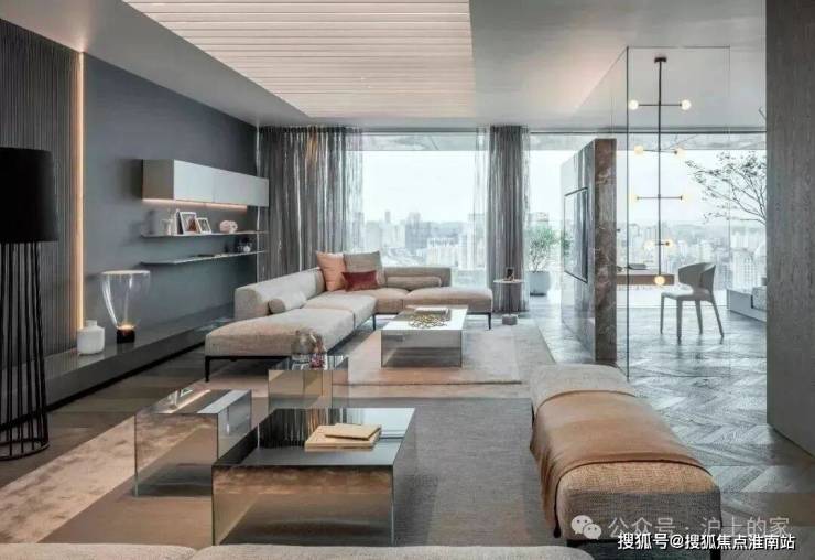 当然光是大落地窗肯定还有些单调,进步设计在利用框架剪力墙结构做到的分割大平层。