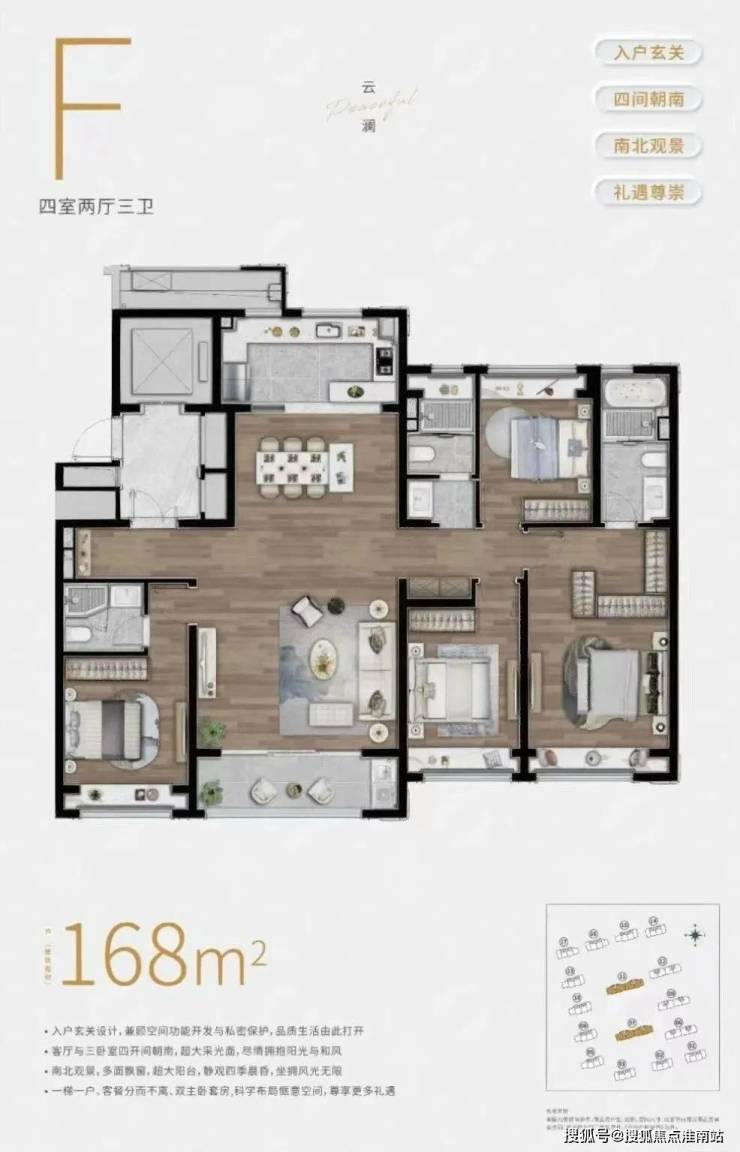 另外,四房户型双房朝北似乎是逃不开的问题,但陆家嘴锦绣云澜这个建面约168㎡的4房却做到了三间卧室全朝南,并且南向双套房设计。