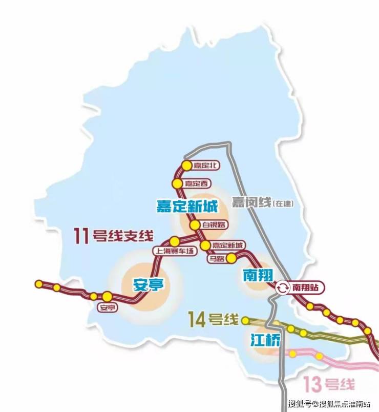 而通过嘉闵线(建设中),南翔可几站内直达虹桥核心区。(嘉闵线,是一条“特殊地铁”,南北走向。自嘉定北站至莘庄北站,其中在南翔设有3个站点。)